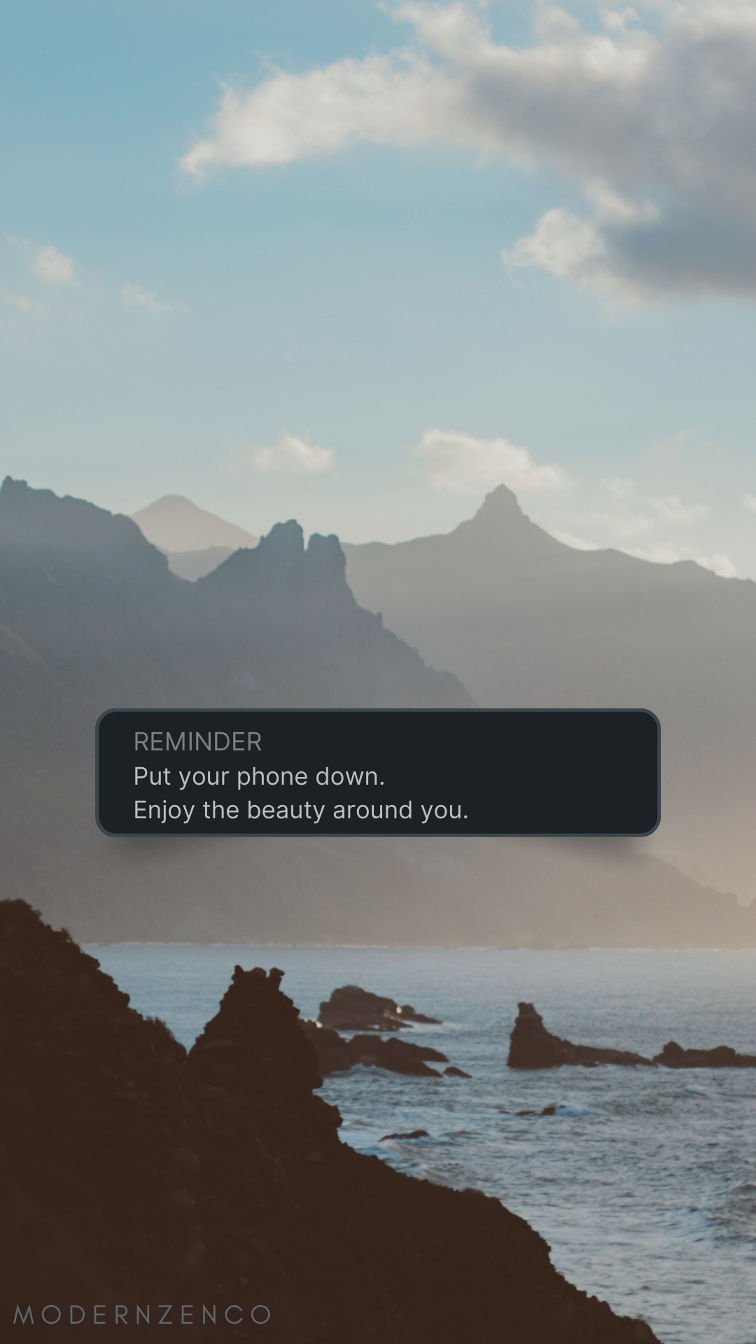 Ironic that this wallpaper is for your phone, but it reminds you to put your phone down. The average person picks up their phone 96 times a day. Here's a little reminder to put down the phone even for one pickup, and enjoy the beauty around you.